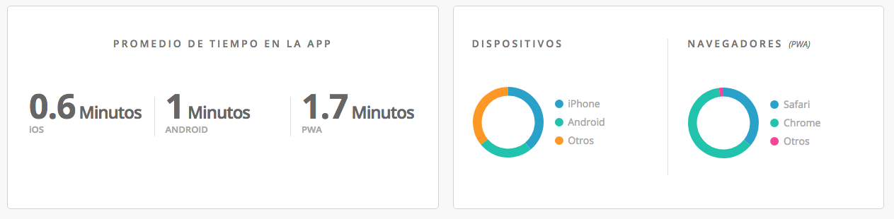 En «Navegadores» verás desde qué navegadores acceden los usuarios de PWA, que en Android por defecto suele ser Chrome, y en iOS Safari, pero puede ser que el usuario utilice «Otros» como Opera.